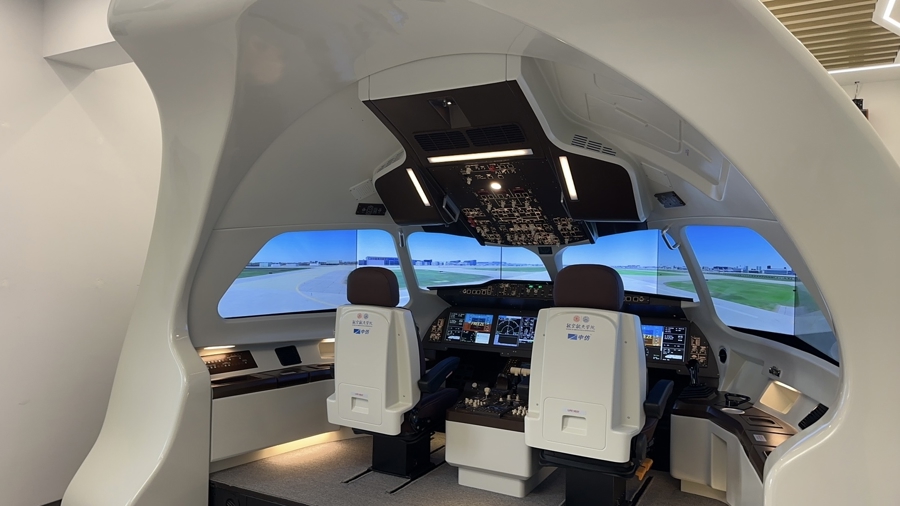 “基于座舱的交互式飞控系统开发验证平台”1:1还原了国产大飞机C919真实驾驶座舱场景 陆梓华 摄