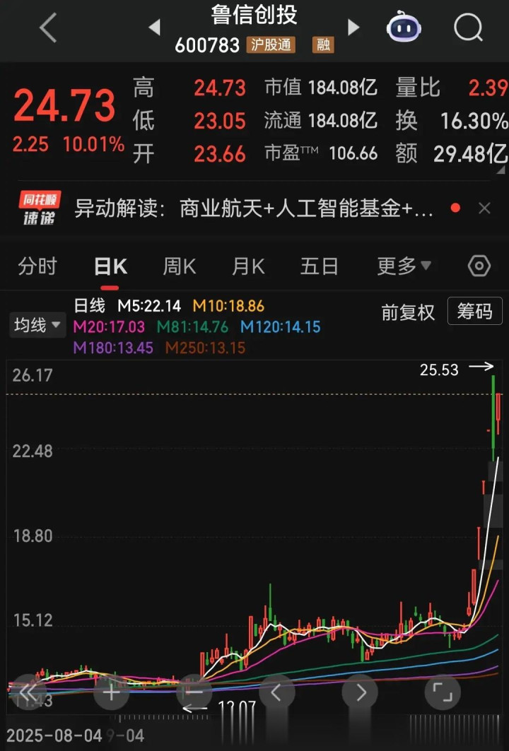 商业航天赛道的热度随着蓝箭航天IPO获受理而急剧升温。二级市场上,鲁信创投曾因概念加持在短期内股价飙升超50%,公司不得不发布风险提示公告。